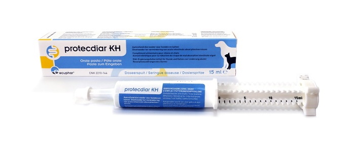 Protecdiar KH-Paste für Hunde und Katzen kann bei akuten Resorptionsstörungen im Darm eingesetzt werden. Wir empfehlen Ihnen, Ihrem Haustier dieses Ergänzungsfuttermittel in Form einer oralen Paste zwei bis drei Tage lang zweimal täglich zu verabreichen. Empfohlene Menge: 1 ml (1 Teilstrich) pro 2 kg Körpergewicht.
